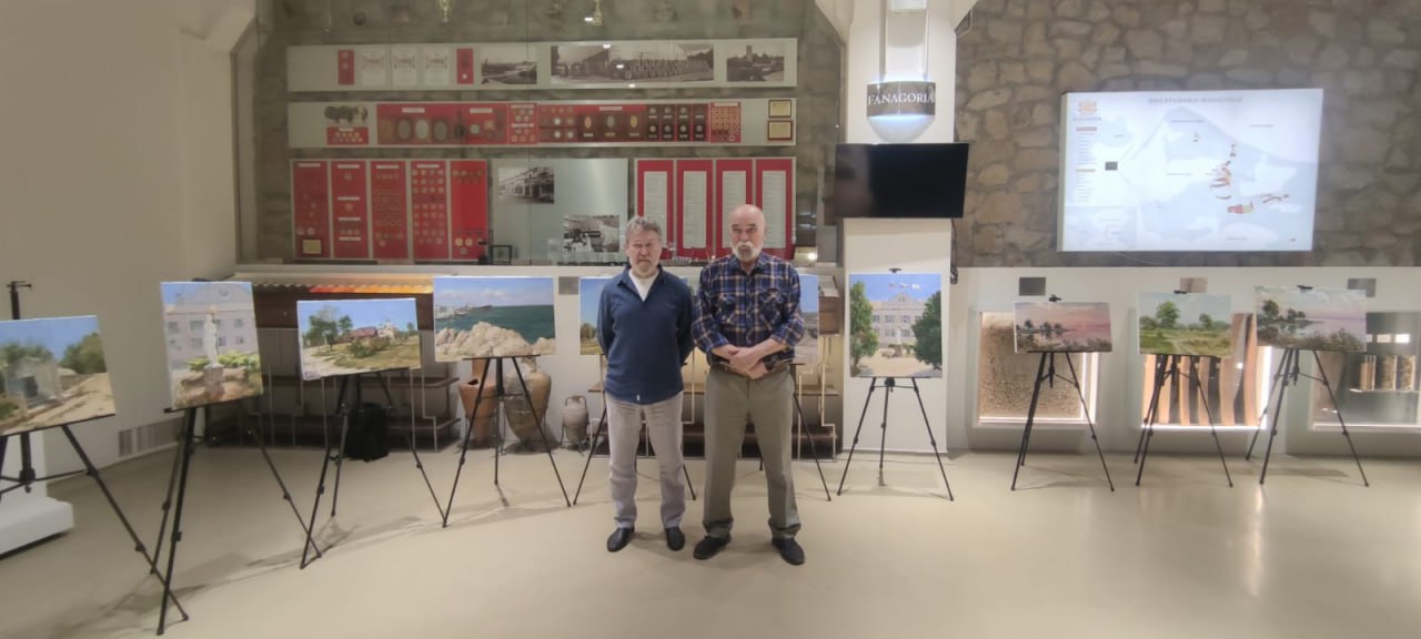 В пятницу, 19 сентября, в винном подвале “Фанагория” открылась выставка петербургских художников, которые провели свой двухнедельный пленэр в Сенном на Таманском полуострове. На полотнах они отразили красоту Таманского полуострова и красивые моменты будней винного дома “Фанагория”.